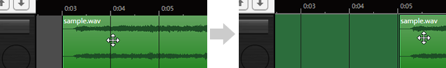 Drag an audio element left or right (hold down the left mouse button) to change the playback timing.