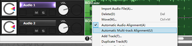 When "Automatic Audio Alignment" in the right-click menu is turned on, audio elements will be automatically aligned so that they will not overlap each other.