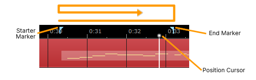 Drag it left or right automatically moves the position cursor in that direction. Hold down AltAlt and drag to attach the position cursor to the closest second (or bar, depending on the time base of the ruler).