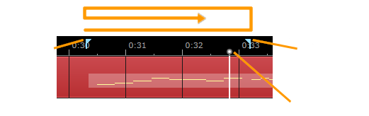 The start/end point markers displayed in the ruler can be moved by dragging (hold down the left mouse button). Hold down AltAlt and drag to attach the marker to the closest second (or bar, depending on the time base of the ruler).