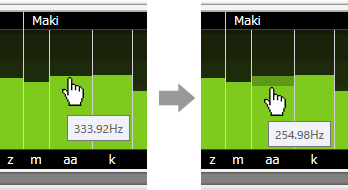 Double-clicking on an adjusted phoneme graph will restore only that part of the graph to its default value. Holding down the Ctrl key and dragging the mouse restores the area where the mouse passes to its default value.