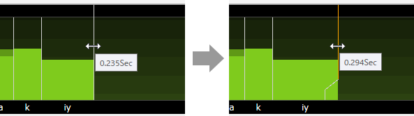 Drag the white vertical line (orange after adjusting) to adjust the length of the vocalization.