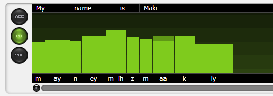 Dragging up and down from the text area above allows you to adjust the pitch/volume in word units.
